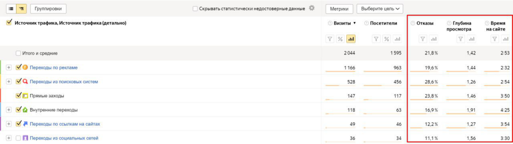 Чтобы получить эти метрики, настройте дополнительные цели – отслеживайте визиты на конкретные страницы или действия пользователей.