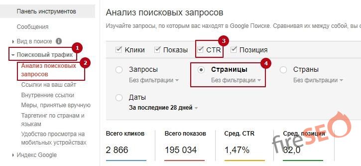 1. Находим крайне низкие показатели CTR для страниц нашего сайта
