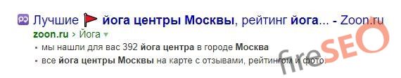 Путем манипулирования инструмента Быстрые ссылки в вебмастере яндекса получаем следующий сниппет в выдаче: