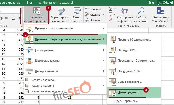 Теперь обрабатываем вместе столбцы CTR и позиции — с помощью инструмента «условное форматирование».