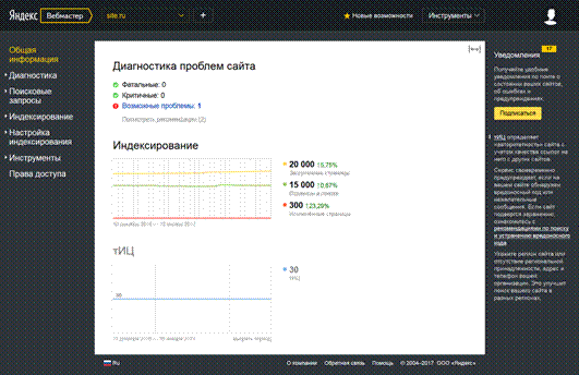 Яндекс анализирует сайт на ошибки, дает рекомендации по их устранению, соответственно, позиции веб-страниц растут в поисковой выдаче, увеличиваются посещаемость и конверсия.