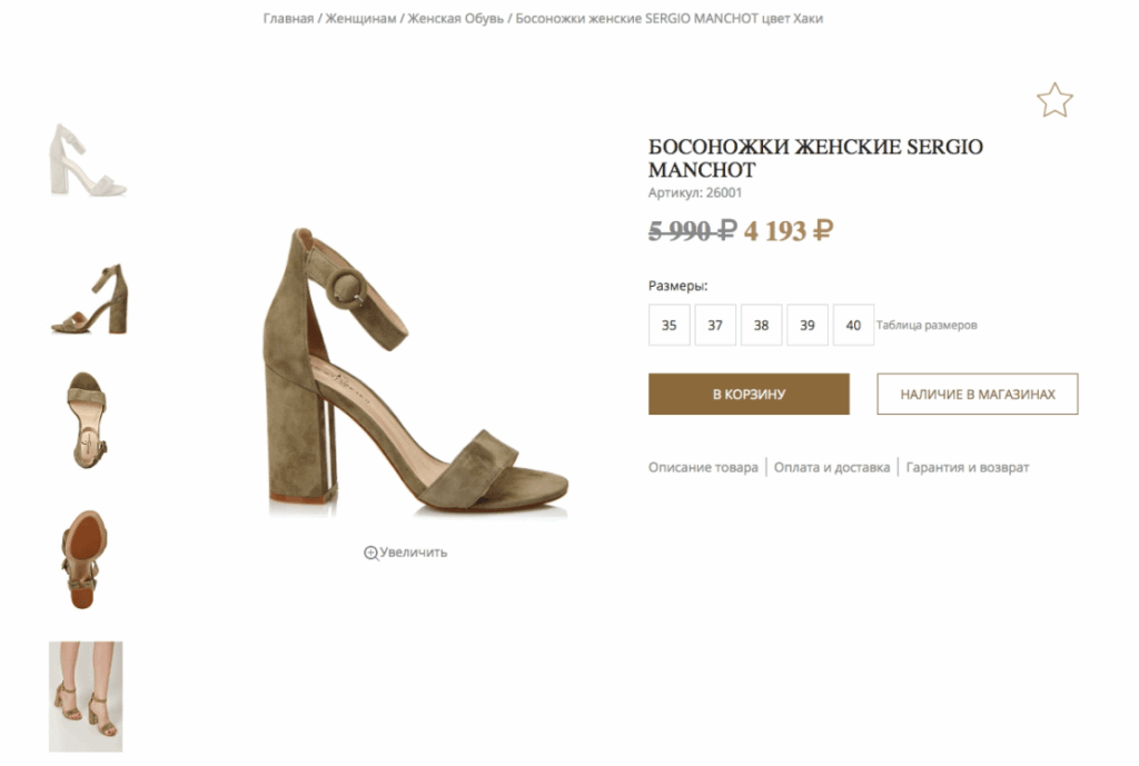 Кнопки «Купить» или «Добавить в корзину» должны быть хорошо заметны плюс предоставлена возможность сразу оформить заказ или продолжить покупки. Значок корзины выносится в шапку сайта.