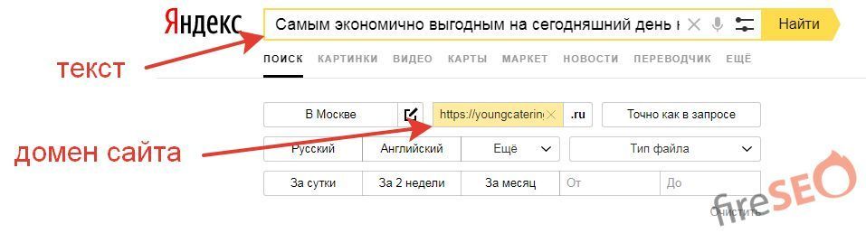 Копируем с любой страницы сайта фрагмент текста и вставляем в поисковую строку