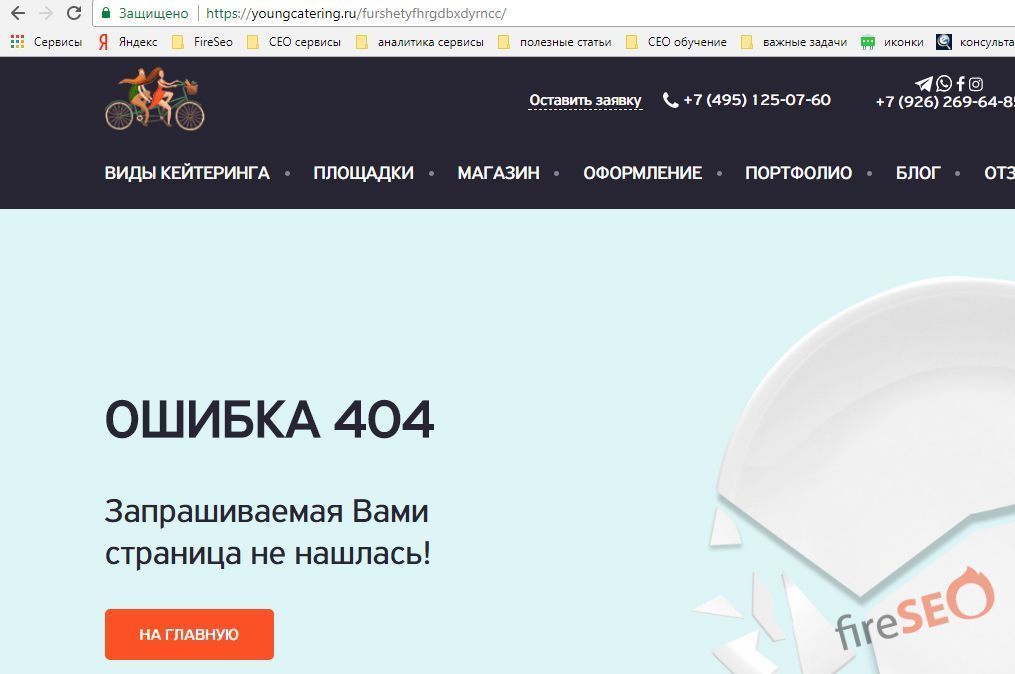 Чтобы проверить код 404, используйте адрес несуществующей на сайте страницы — например, случайную комбинацию букв и цифр — https://youngcatering.ru/furshetyfhrgdbxdyrncc/. Если в кодах ответа указано 404, то сервер отдает правильный код, если что-то иное — даем задание программисту.