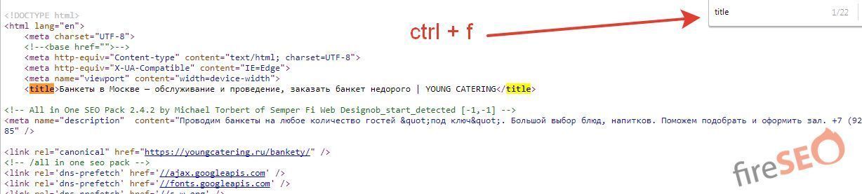 Далее клавишами ctrl+f вызываем поиск и пишем туда title или description и проверяем: