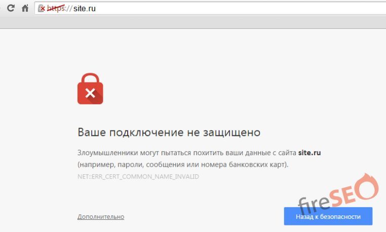 Если уровень защищенности сайта не дотягивает до нормы, то браузер сообщает о небезопасности ресурса: