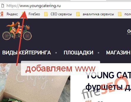 Добавляем на сайт www — должен сработать переход на страницу без www.