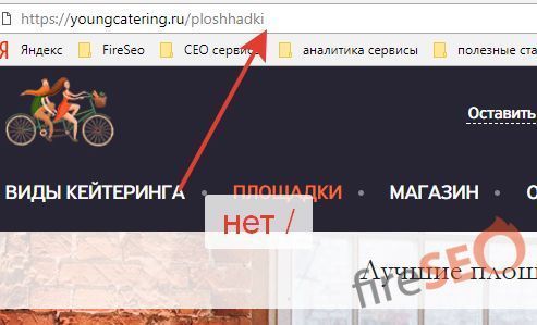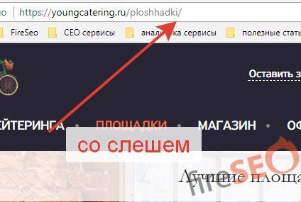 Проверяем — внутренние страницы показываются со значком слэша «/» на конце. Вот пример таких страниц сайта: