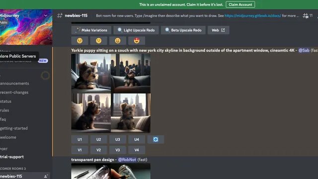 Интересным преимуществом платформы Midjourney является то, что вы можете видеть входы и выходы других пользователей в чате Discord.