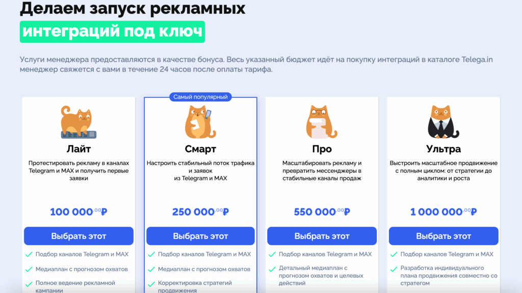 В Telega.in есть 6 форматов размещения: 1/24, 2/48, 3/72. Есть массовые репосты, формат без удаления и нативные посты. Тексты для последних пишут владельцы каналов, чтобы они стилистически не выделялась на фоне остальных публикаций.