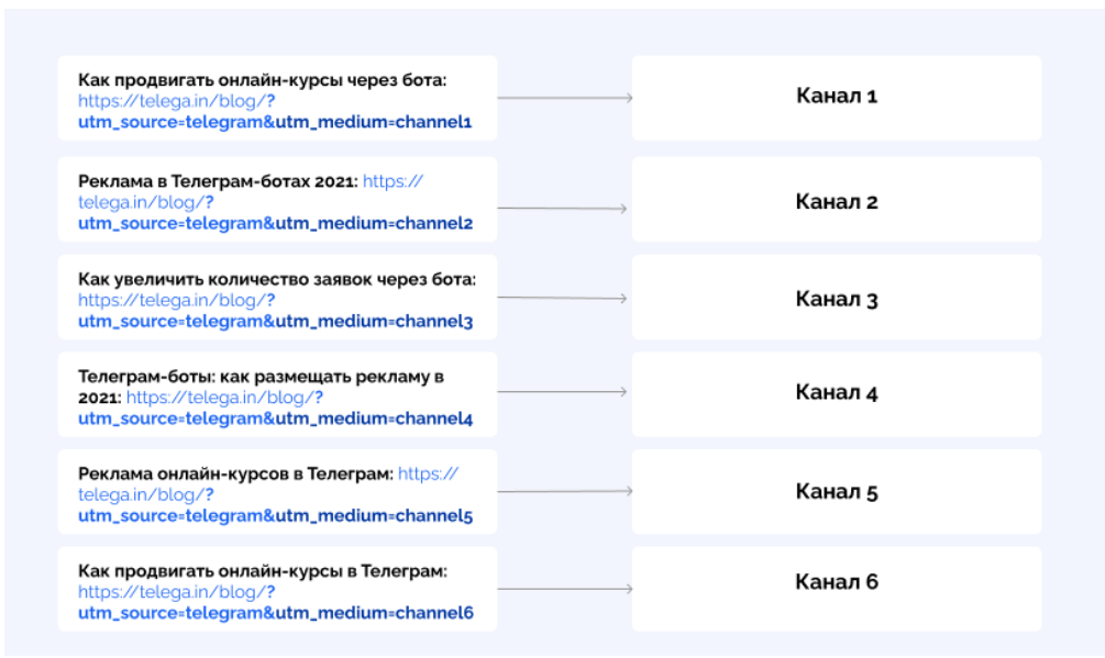• Один пост, разная ссылка. Этот сценарий также позволяет не тратить много времени на запуск, но с ним уже можно видеть, сколько подписчиков пришло с каждого канала.