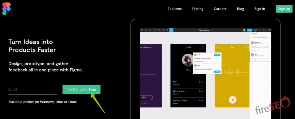 Figma — лучшее из мира дизайн-инструментов для удобного пользовательского интерфейса, его удобно использовать на первом этапе создания сайта: разработка дизайна.  Этот программный продукт доступен в браузере и открывается с разных платформ. Установочные пакеты и всяческие приложения тоже не требуются — просто заходите на figma.com, регистрируйтесь, если вы впервые, или заходи под своим аккаунтом, если уже работали и начинайте работать:
