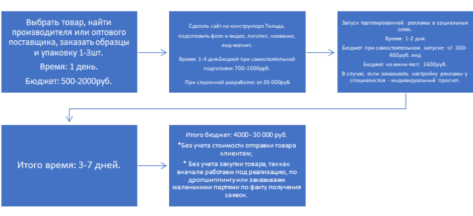 Сейчас можно за 2-5 дней запустить первый тест с минимальными затратами, получить первых клиентов, отгрузить им товар или предоставить услугу и заработать первый доход.