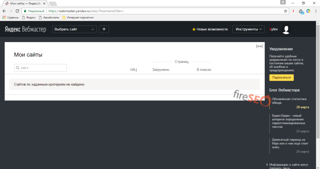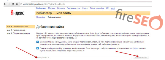 Затем введите url (адрес) своего сайта, например, fireseo.firedemo.ru/