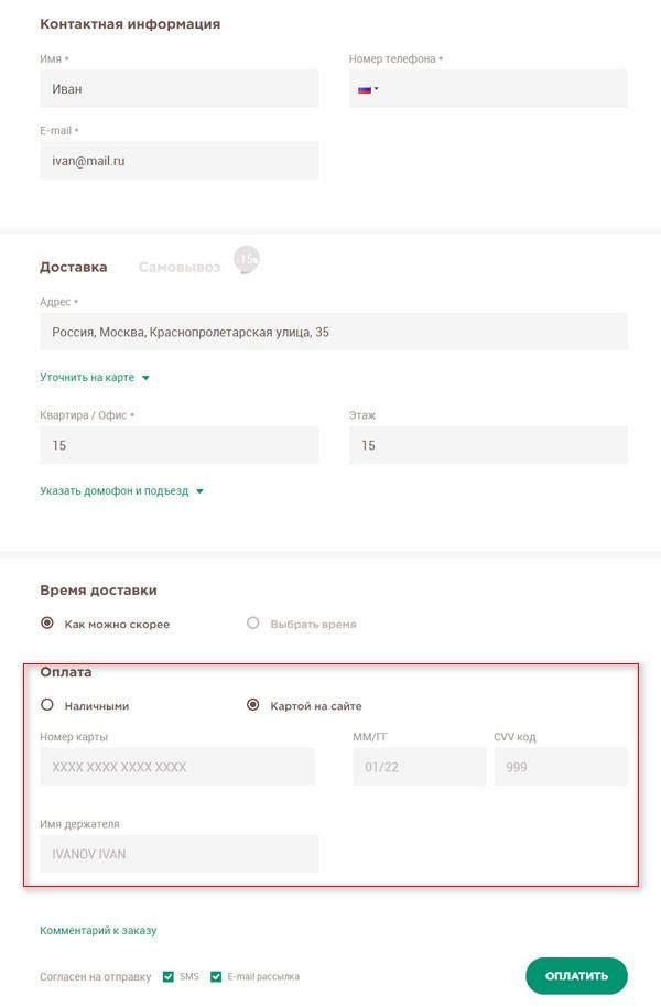 Чтобы оформить покупку, вам нужно заполнить личные данные. Затем одним кликом вы переходите к способам оплаты, которых три.