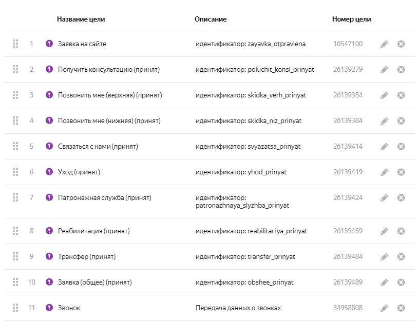 Чтобы посчитать, сколько денег мы тратим на получение таких данных, настроим цели в Яндекс. Метрике или Google Analytics. Без настройки аналитики никаких данных по стоимости получить не получится. А еще обязательно настроим передачу данных о звонках в системы аналитики, т.к. без данных по звонкам не будет полной картины.