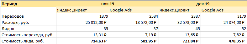 После настройки цели мы можем посчитать стоимость привлечения лида по такой формуле: