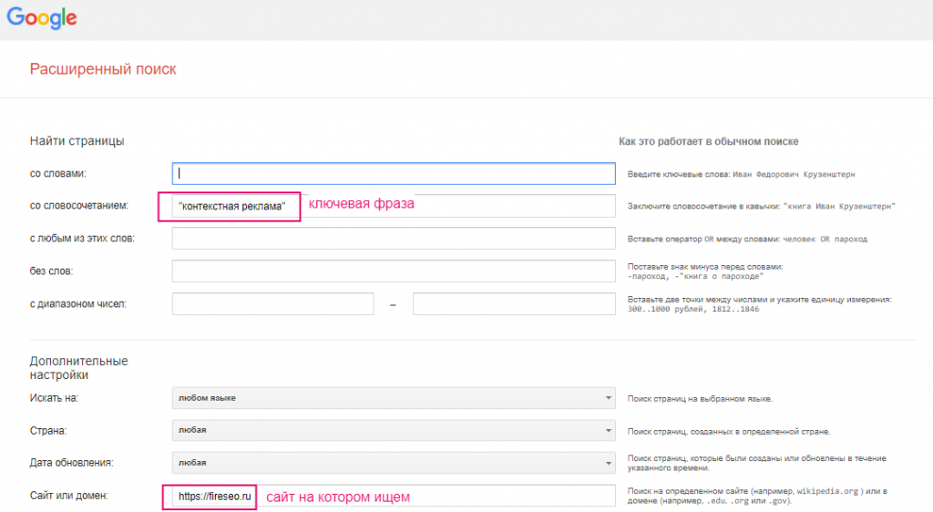 Расширенный поиск от Google