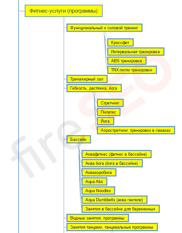 Пример части структуры сайта для Фитнес-клуба