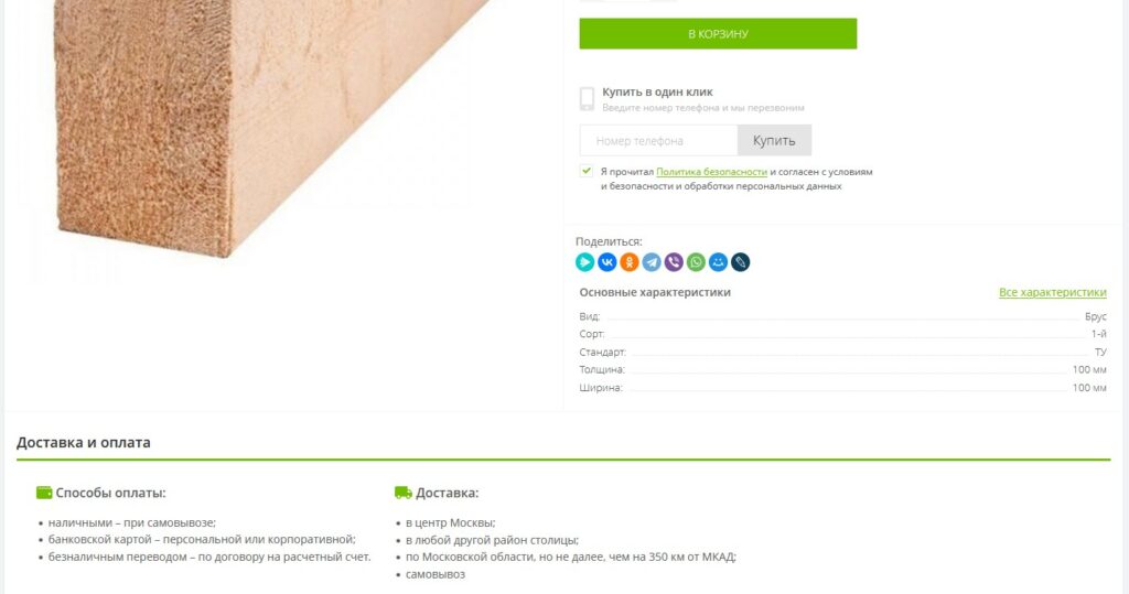 Пример важных блоков и информации в карточке товаров