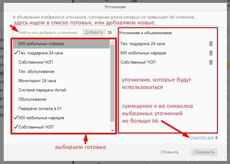 А еще – учтите длину одного уточнения, ограниченную до 25 символов с пробелами.