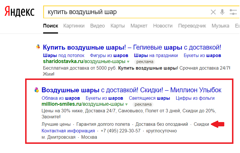 Задействовав уточнения в рекламных объявлениях, рекламодатель раскрывает дополнительную информацию возможным покупателям, а еще получает преимущество — корректирует целевую аудиторию. Характеристики, свойства товара, специальные предложения помогают пользователю принять решение о релевантности такого товара или услуги – еще до перехода на сайт, а значит, до списания цены за клик.