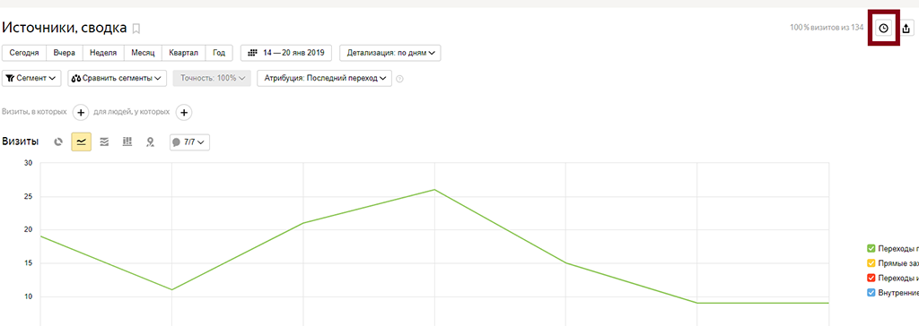 Для построения такого отчета необходимо нажать на иконку с часами: