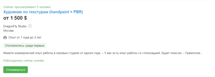 Художники по текстурам тоже могут найти вакансии с оплатой примерно в 130 000 руб.