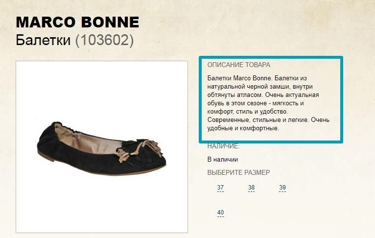 Когда создавали магазин для бутика обуви, написали вот такой легкий, незатейливый и приятный текст в описании: