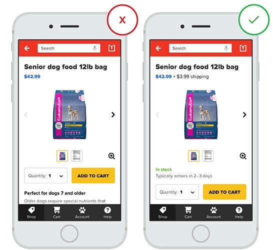 Пользователи ожидают, что стоимость и сроки доставки будут ясны и определены как можно скорее; они часто сравнивают стоимость доставки со скоростью, с которой они могут получить заказ.