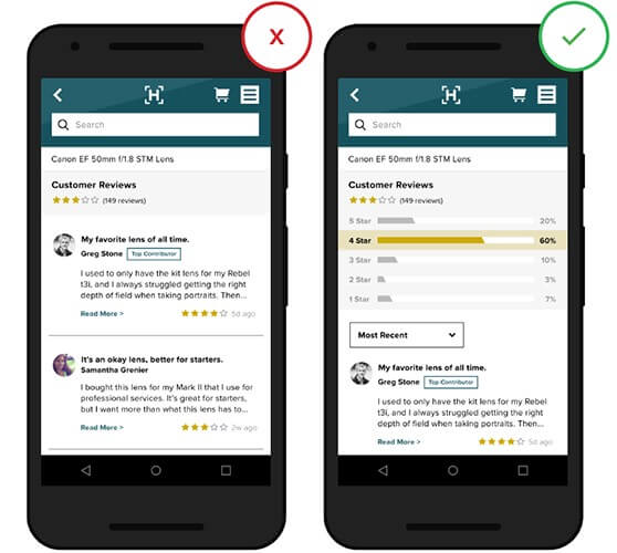 Разрешите пользователям сортировать и фильтровать отзывы, чтобы они могли узнать «правду» о товаре.