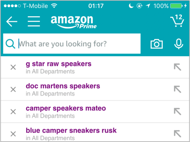 Амазон запоминает предыдущие поисковые запросы и напоминает о них при повторном поиске
