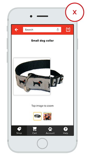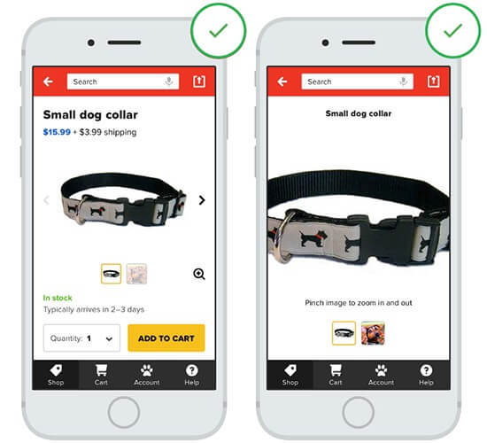 Изображение используется для того, чтобы почувствовать продукт так, как это не позволяет текстовое описание. Поскольку пользователи обычно полагаются на изображение продукта для оценки функций и деталей, они могут расстроиться из-за приложений или мобильных версий, которые увеличивают изображения с фиксированным уровнем увеличения.