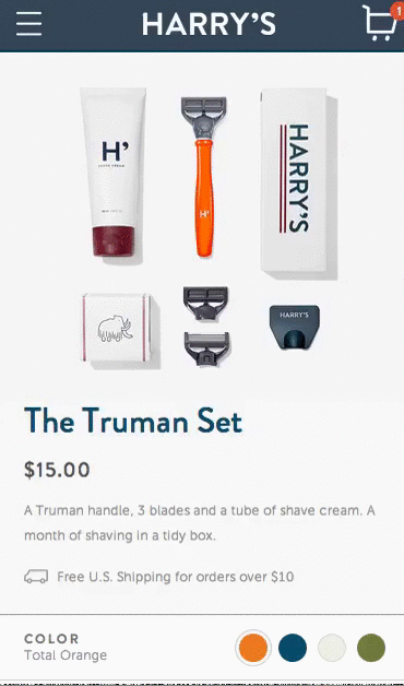 2) Контекстные изображения также могут быть полезны для ваших пользователей. Например, бренд Harry использует изображения, чтобы рассказать историю бренда в мобильном режиме.