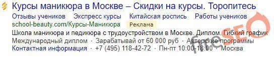 Подготовили и разместили рекламные объявления. Посмотрите на пример объявления на Поиске: