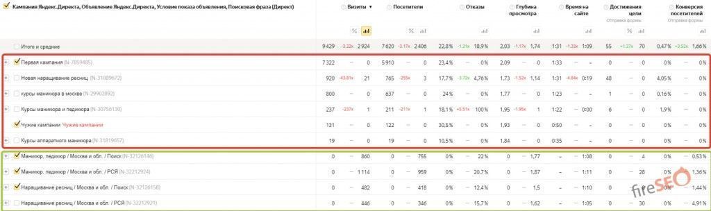 А теперь давайте сравним результаты нашей работы и показатели кампаний, настроенных другими подрядчиками: