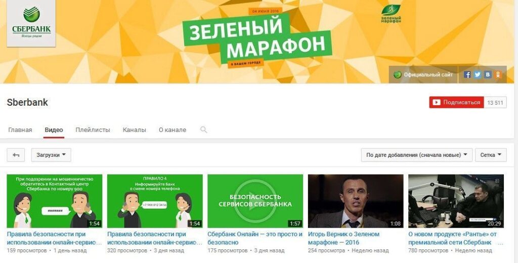 Как Сбербанк, например. На фото видно канал самого большого банка России