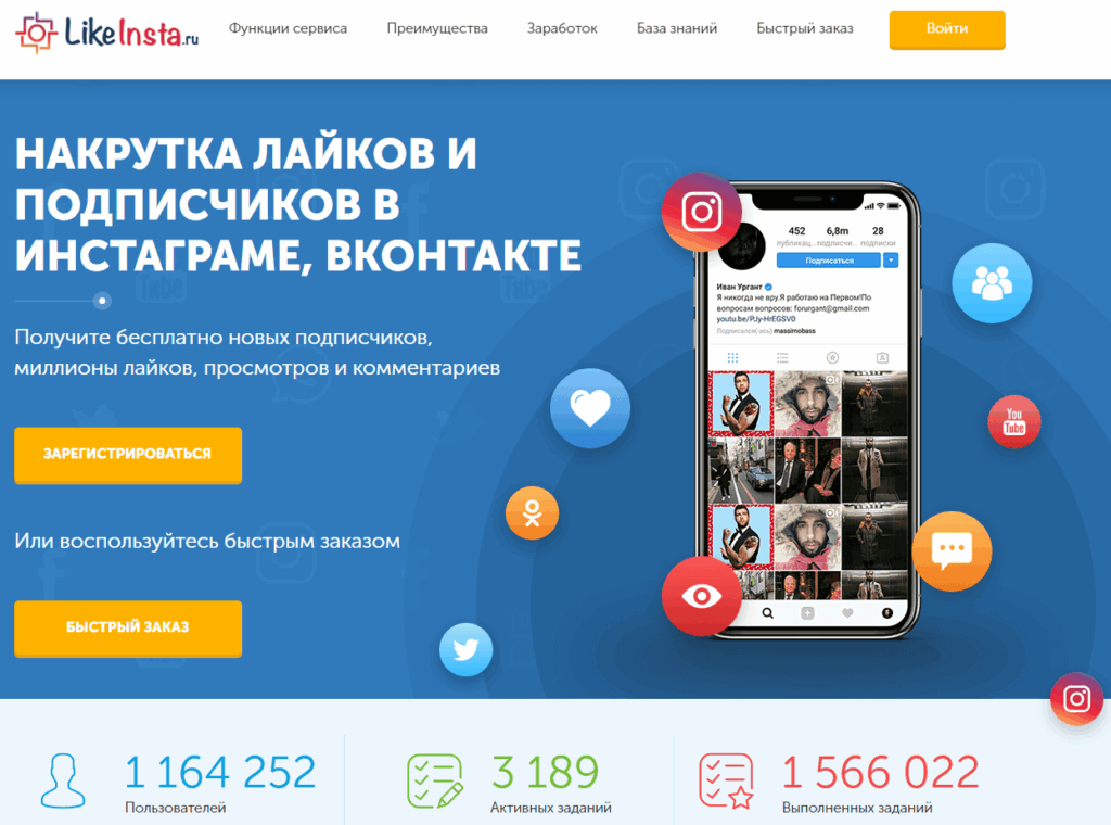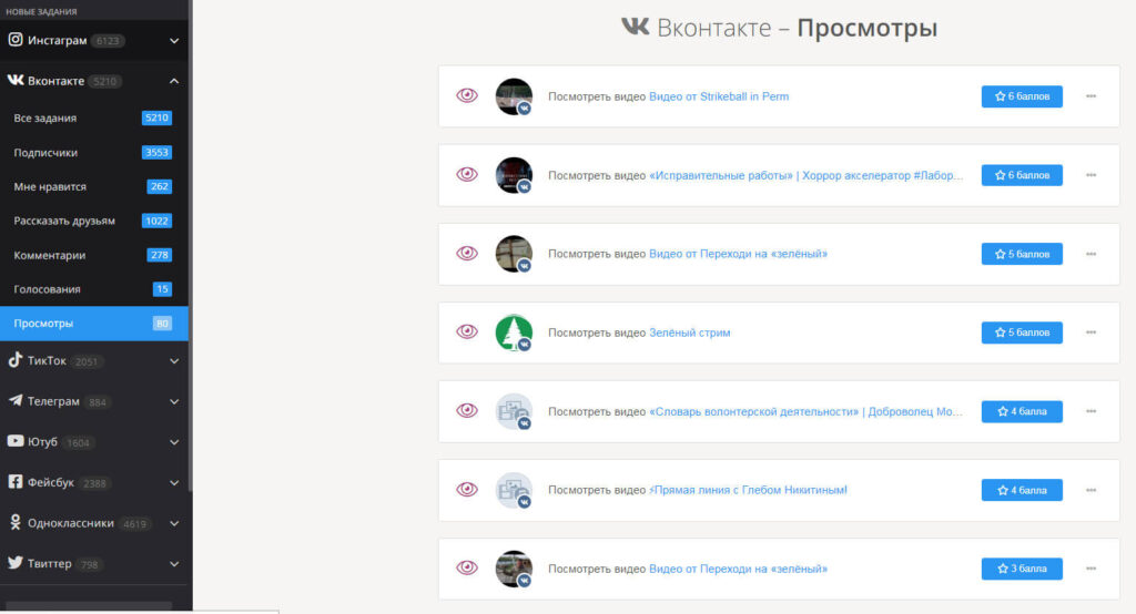 Наиболее известная биржа накрутки, которая работает с множеством сетей. На ней легко стать исполнителем – требуется лишь регистрация. За каждое задание начисляются баллы. Их можно собирать, чтобы затем потратить на накрутку для своей группы.