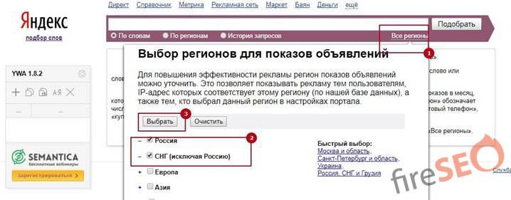 Исключения: Если это информационный сайт – региональность можно не указывать, тогда по умолчанию ключевикам будет присваиваться частотность их спроса по всему миру.