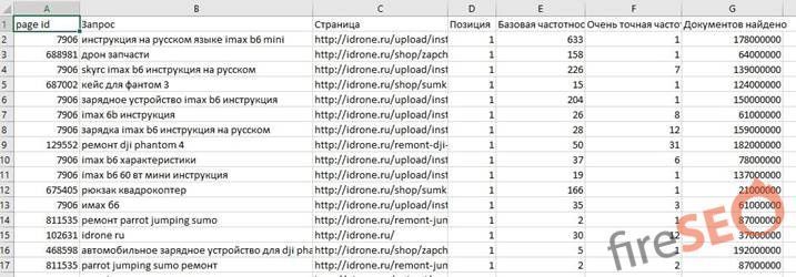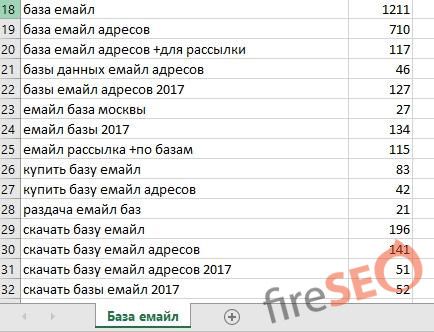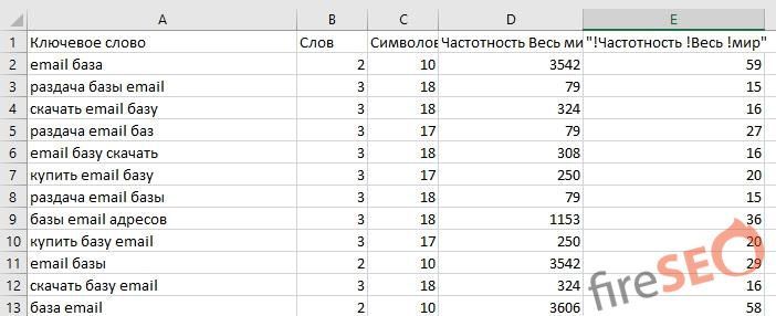 Дальше заходим в Excel или в другой сервис по обработке семантики и копируем туда наши ключи: