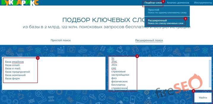 Бесплатный сервис «Букварикс» (bukvarix.com) — еще один хороший вариант сбора семантического ядра, так как содержит огромную базу из 2 миллиардов ключей, при этом постоянно обновляется: