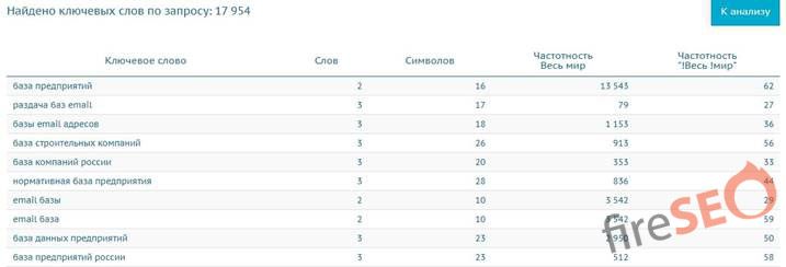 Сервис предоставляет возможность получать семантику исходя не только из ключевой фразы, но и с помощью доменного имени сайта. То есть можно проанализировать сайты конкурентов, которые уже проиндексированы и содержат интересующие нас запросы.
