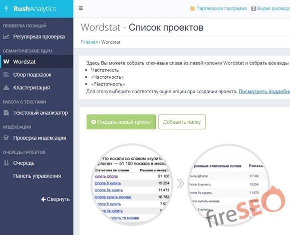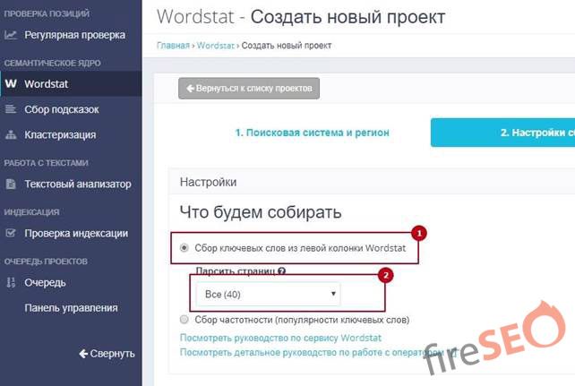 Сервис использует тот же Wordstat для сбора ключевых запросов, но все настраивается в несколько кликов и не требует от вас дополнительных знаний.