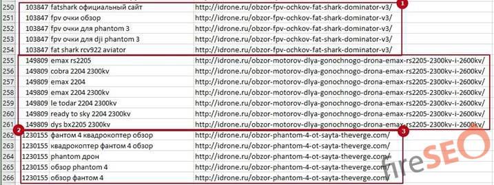 - Выборки по списку запросов конкурентов