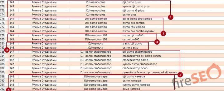 - Разбивка семантики сразу по страницам, согласно данным конкурентов