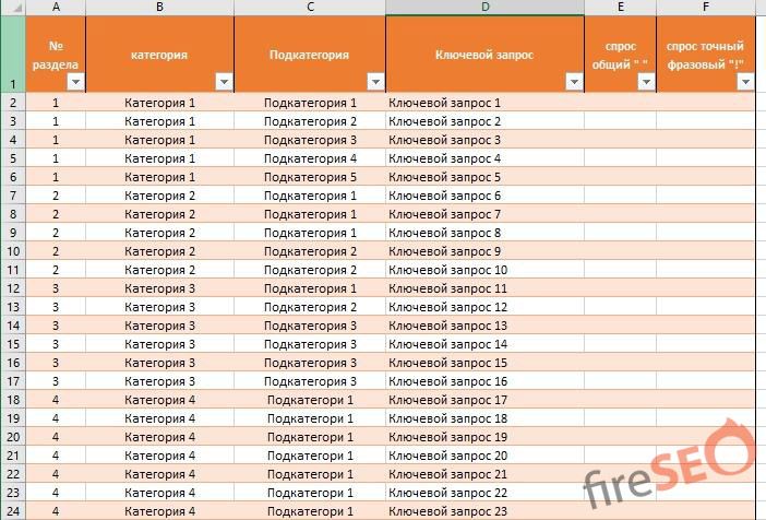 Организовав правильно работу фильтров в Excel, отсортируем ключи по группам для более ясного восприятия: