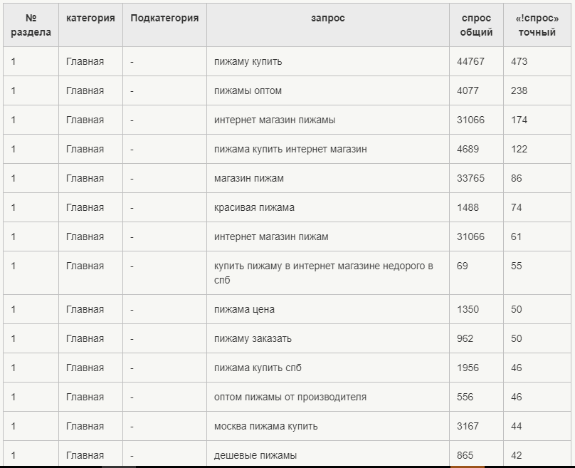 Такая информация многократно увеличит и расширит направления, по которым собираем семантическое ядро: