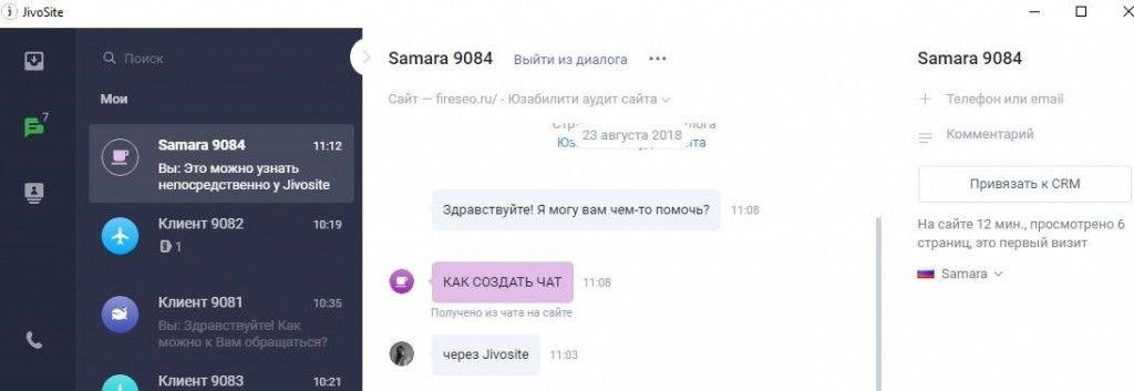 - Ощутимый плюс – мобильное приложение, поэтому оператор с удобством отвечает на вопросы посетителей сайта с ПК, смартфона или планшета, не привязываясь к одному устройству