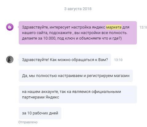 Пожалуй, самое популярное – обращения, связанные с регистрацией в Я. Маркете или настройкой аккаунта. За один весенний месяц мы прошли модерацию минимум для пяти интернет-магазинов, и все эти заявки пришли из Jivosite. А вот один из последних примеров: