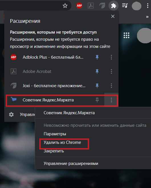 - Найдите приложение, в выпадающем списке выберите «Удалить из Сhrome».